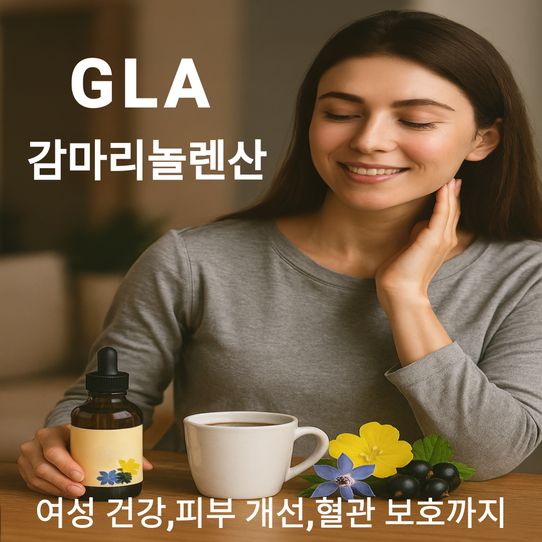 GLA(감마리놀렌산)는 단순한 오메가-6 지방산이 아니라, 호르몬 균형, 피부 개선, 심혈관 건강, 면역력 강화 등 다방면에서 효과를 발휘하는 중요한 영양소입니다. 달맞이꽃 종자유, 보리지 오일 등을 통해 보충할 수 있으며, 올바른 섭취법을 따른다면 다양한 건강 문제를 예방하고 개선하는 데 도움을 줄 수 있습니다. 다만, 부작용 가능성과 개인별 건강 상태를 고려해야 하므로 전문가와 상의 후 섭취하는 것이 안전합니다. 요약하자면, GLA는 여성 건강 + 피부 + 혈관 건강을 동시에 관리할 수 있는 천연 솔루션으로, 현대인에게 꼭 필요한 필수 지방산입니다.