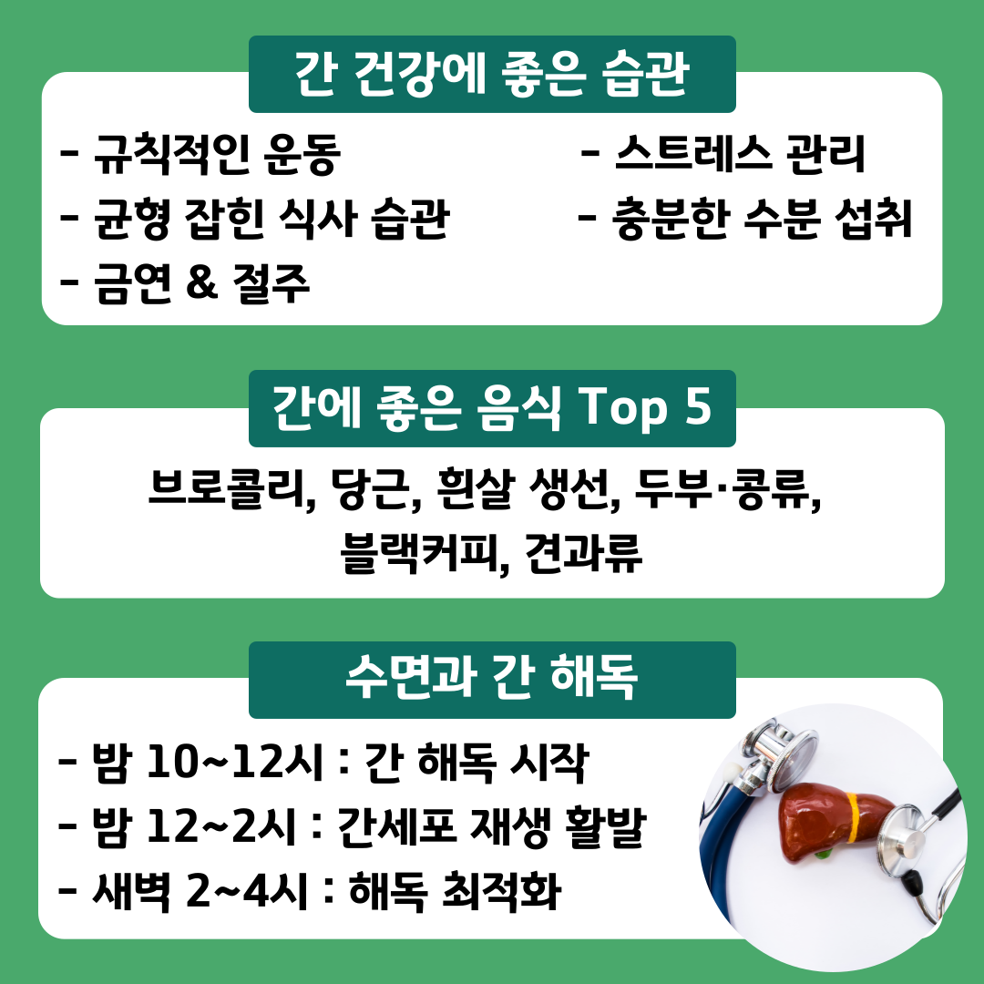 "간 건강이 걱정된다면 지금 체크하세요! 간에 해로운 습관과 좋은 음식, 생활습관 꿀팁까지 담은 간 건강 관리법을 알려드립니다."